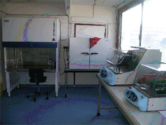 Building space have been renovated to receive a microbiology plateform dedicated to a safety L2 laboratory. This plateform provides the A containment level defined for class 2 pathogens micro-organisms (‘organisms that may cause human disease and which might be a hazard to laboratory workers but is unlikely to spread in the community ; laboratory exposure rarely produces infection and effective prophylaxis or effective treatments are usually available’).